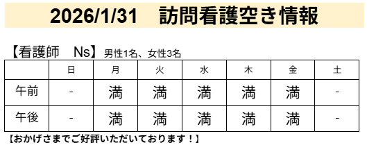 | お看取り | 〇 | 感染症ケア | 〇 |