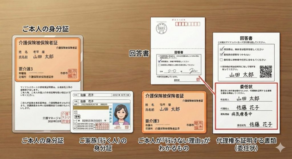 ご本人が市役所(田無・保谷庁舎)に行けない場合、ご家族が代わりに行きます。