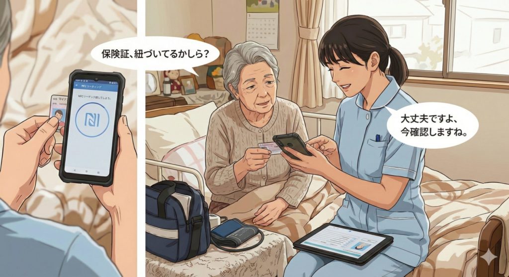 そんな時は、訪問時にすけさんのスタッフに聞いてみてください。私たちが持っている端末で、保険証情報が正しく入っているか確認できる場合があります。