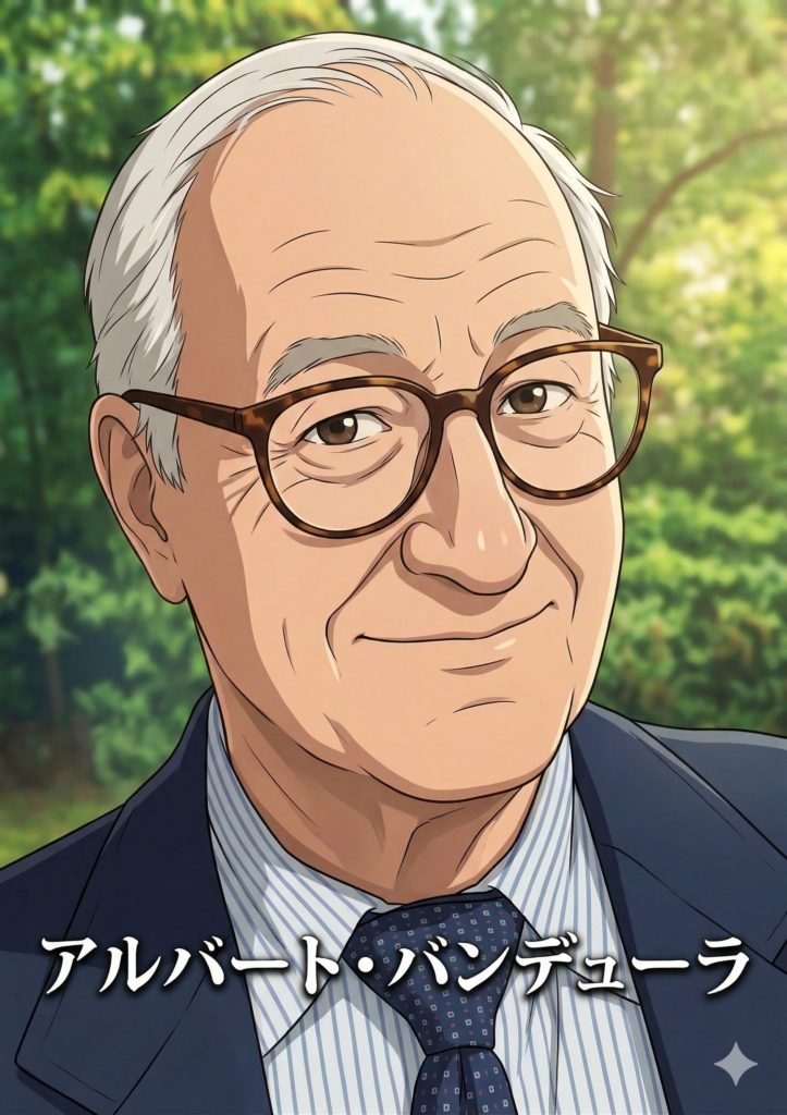 このイラストは、Fridolin freudenfett 氏による写真「Albert Bandura Psychologist」をAIによってアニメ風に加工(改変)したものです。
